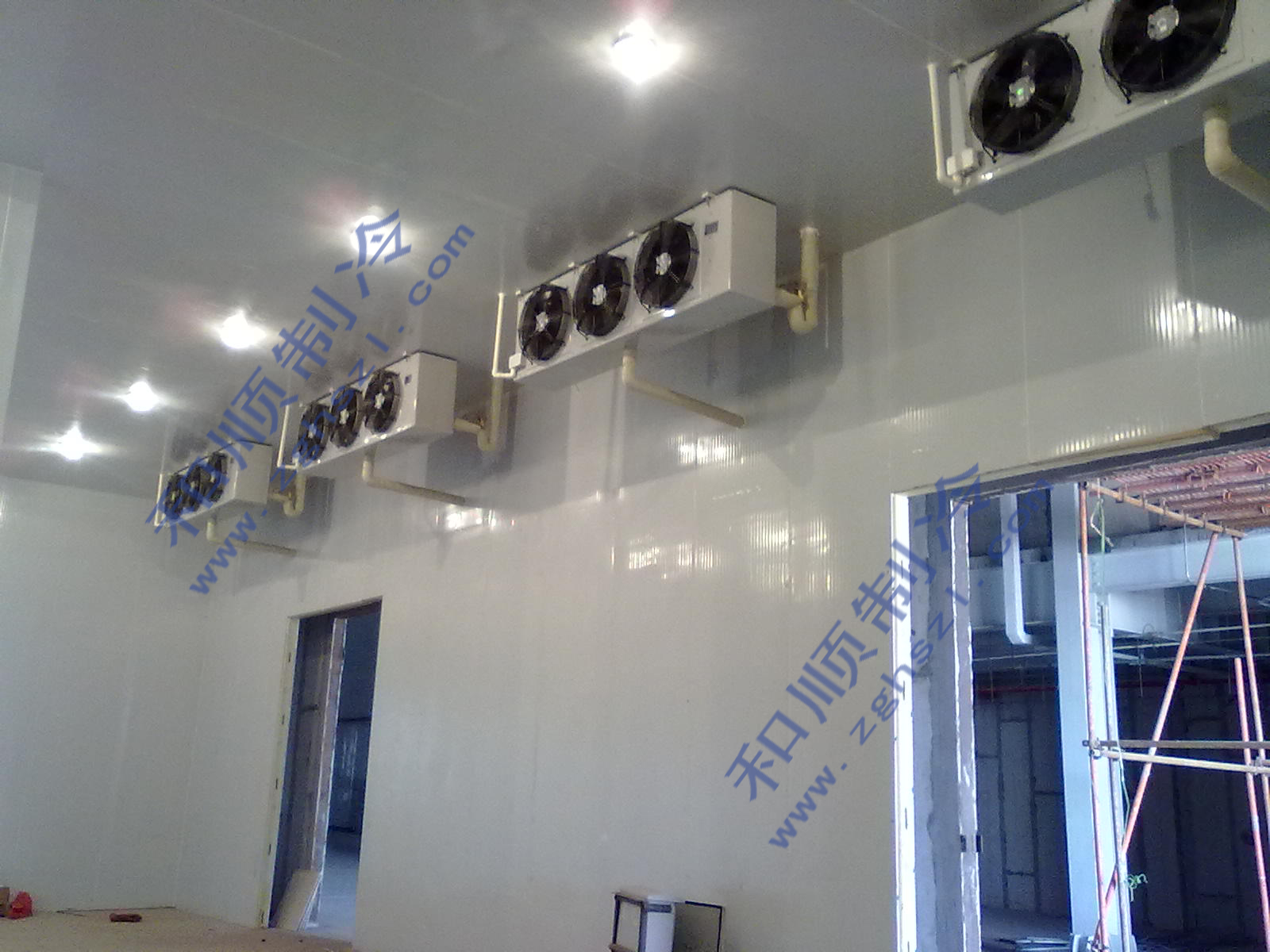 先介绍一下改造方法:使用聚氨酯喷涂在建筑物内表面制造一层保温层,就得到一个保温的库房了,然后再安装设备。