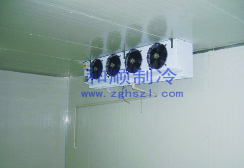 风冷式就是通过风扇吹走制冷剂释放的热量,常用于制冷负荷较小的冷库。